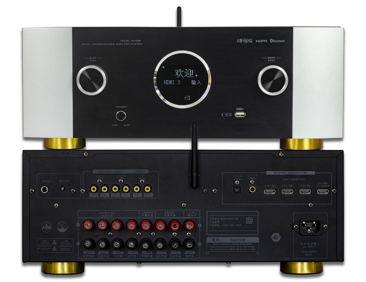 这是家庭影院功放。也是卡拉OK功放你可以在家里看电影和唱歌